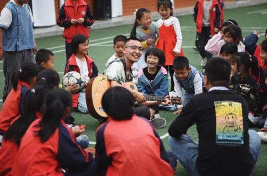 乐队“薛老师和他的朋友们”为孩子们的诗歌谱写乐章。音符与字节一起从土地里长出来,浪漫诗意迎风而张。