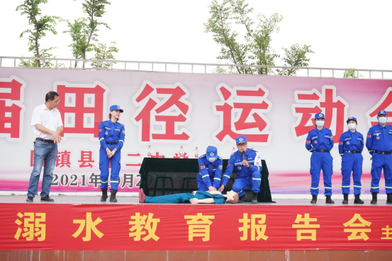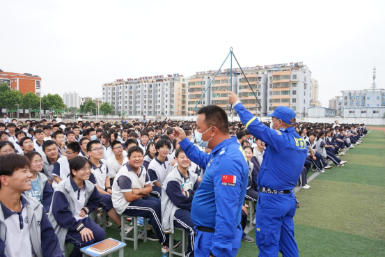 夏季来临。为进一步加强落实防溺水安全教育工作,“为孩子撑起一片蓝天”,保障学生的生命安全,5月31日下午,固镇二中邀请固镇县蓝天救援队,在塑胶田径运动场举行防溺水教育报告会。会议由固镇二中副校长凌开礼主持,固镇县蓝天救援队、固镇二中高一高二年级学生和班主任参加了本次会议。