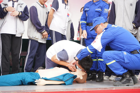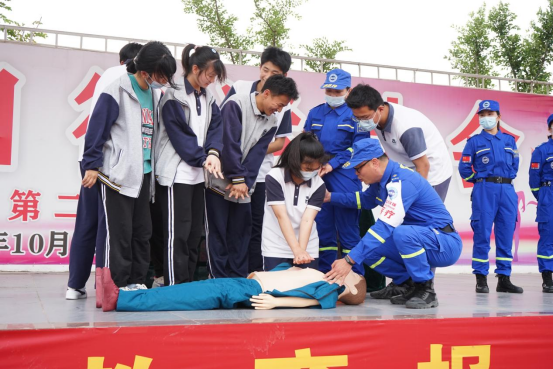 在报告会上,宣讲员联系自身生活实际,语言通俗易懂,并结合学生溺水身亡事故的典型案例,为同学们描述溺水致死原因、溺水症状,就防溺水教育的重要性和紧迫性作了重点讲述。同时,蓝天救援队还用人体模型向同学们现场传授了一些自防自救的安全知识和技能,示范教给同学们怎样心肺复苏、怎样使用救援工具。这些知识和技能为提高学生的自防自救能力,确保生命安全提供了有力的保障。