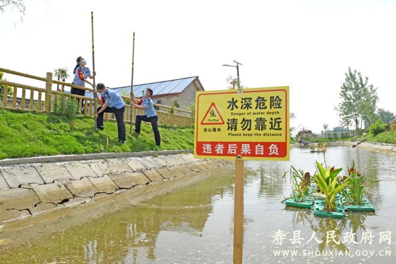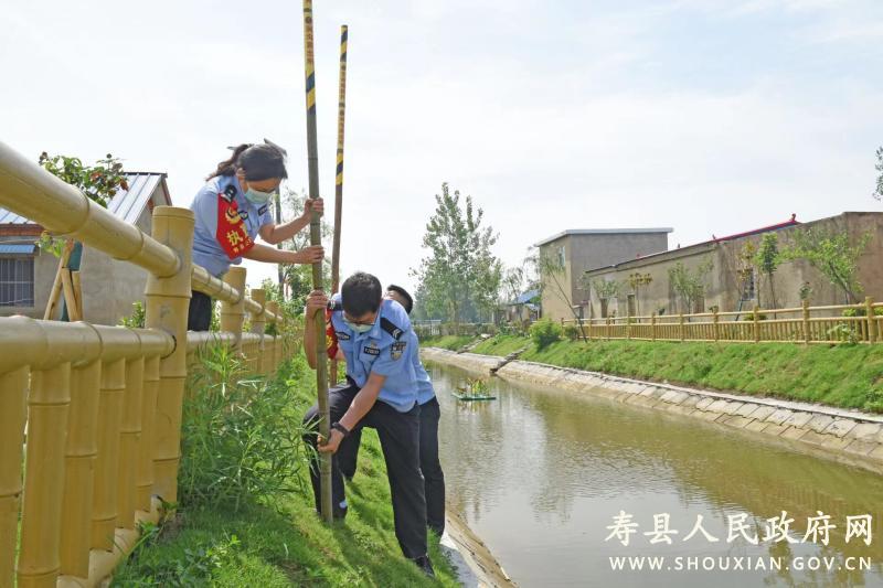 近日,涧沟镇的村民们有些好奇,寿县公安局涧沟派出所的工作人员带着人,扛着几根长长的贴着黄标语的竹竿,在村里的河道和池塘边来来回回。