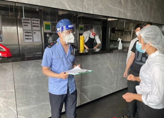 对于恢复营业的食品经营者,闵行区市场局线上视频和线下走访相结合,倡导食品经营企业使用“食安封签”和“无接触配送”服务,查验取餐快递骑手的有效核酸检测报告,认真落实防护措施。