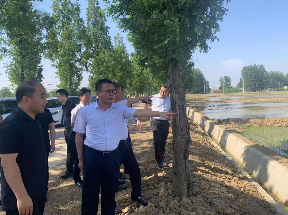 到达阜南县,肖红武在阜南县田集镇党委书记周辉的陪同下,首先深入到阜南县田集镇乡村振兴一期项目实施现场,由轨道公司参与实施的旱改水(水稻种植)目前已长势良好,得到了县委县政府的高度肯定。