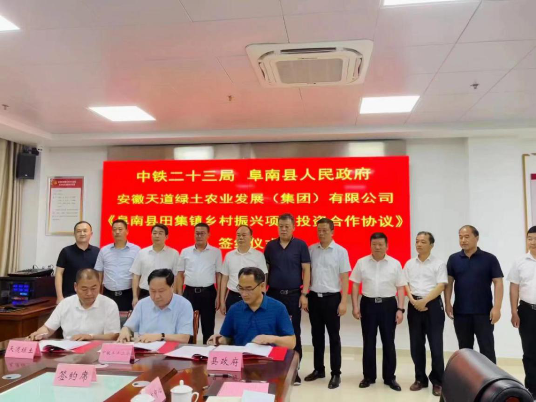 为积极落实国家关于乡村振兴战略要求,践行“要做乡村振兴的引领者、奋进者、开拓者、奉献者”的发展定位,履行央企责任担当,进一步巩固脱贫攻坚成果、助力乡村振兴。2022年6月2日,集团公司党委书记、董事长肖红武,率集团公司华中区域指挥部、投资管理分公司、轨道公司一行人员到阜南县乡村振兴项目现场调研,并出席中铁二十三局集团有限公司同阜南县人民政府关于阜南县乡村振兴项目投资签约仪式。