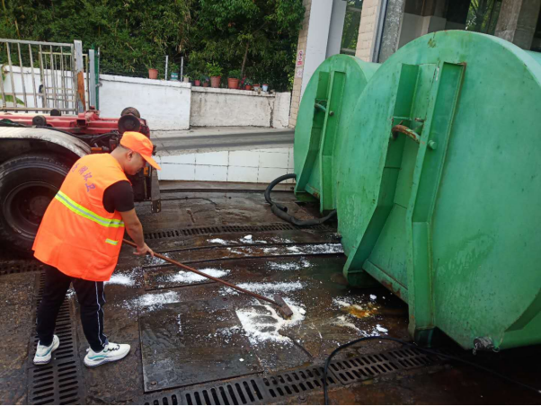 一是加强对垃圾中转站站内及外围环境卫生的保洁,加大对地面、墙面的冲洗力度,重点对地坑、排水沟、排水口等做彻底冲洗,消除卫生死角,加强消杀,在每天六次消杀的基础上,根据情况不定时增加消杀,确保垃圾站里外无异味、无蚊蝇。