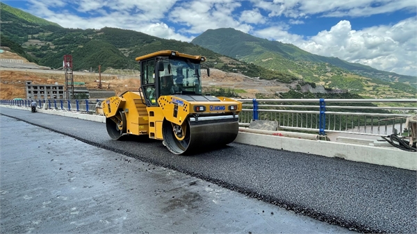 桥面铺装主要由YL-HZ环氧沥青防水粘结剂,60毫米 AC-20C中粒式沥青混凝土,SBS改性乳化沥青黏层和40毫米 AC-13C细粒式沥青混凝土构成,摊铺面积约3200平方米。