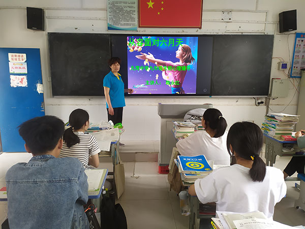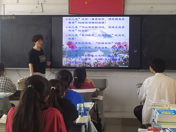最后,陈永红老师带领学生齐读PPT上的鼓励语句,老师以幽默的语气祝愿大家:题目都会,蒙的都对,考出自己理想的成绩!