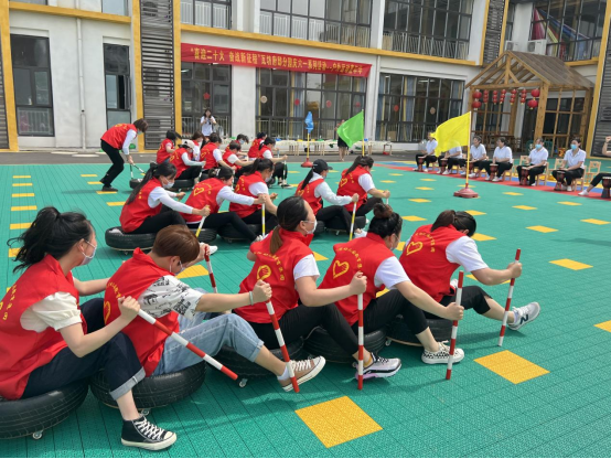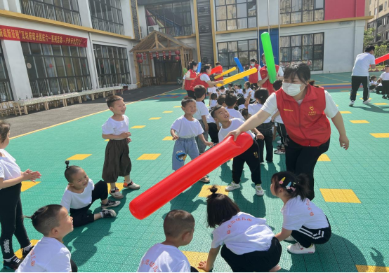 瓦房府邸分园充分发挥体育特色园的优势,引导孩子们将传统节日与体育游戏相结合,发挥幼儿的自主性,设计出“打地鼠”、“跨越障碍”、“穿越魔法丛林和“划龙舟”等游戏。幼儿以班级为单位,组队进行比赛。孩子们在游戏中既锻炼了运动技能又培养了同伴之间的合作能力,还增强了幼儿的竞争意识和集体意识,同时还感受到端午节传统习俗的魅力。