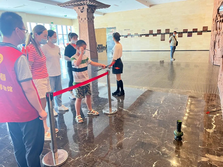 活动现场,工作人员给参观的游客们讲解端午节的来历和传统习俗,随后进行了精彩纷呈的活动环节。 通过赠香囊、玩投壶等活动,吸引众多游客参与其中,大伙们纷纷表示,传统的娱乐方式在当下很有新意。这种寓教于乐的活动形式,取得良好的效果,增添了浓厚的节日氛围。下一步,将进一步创新活动形式,以期为广大市民献上更好的文化服务。