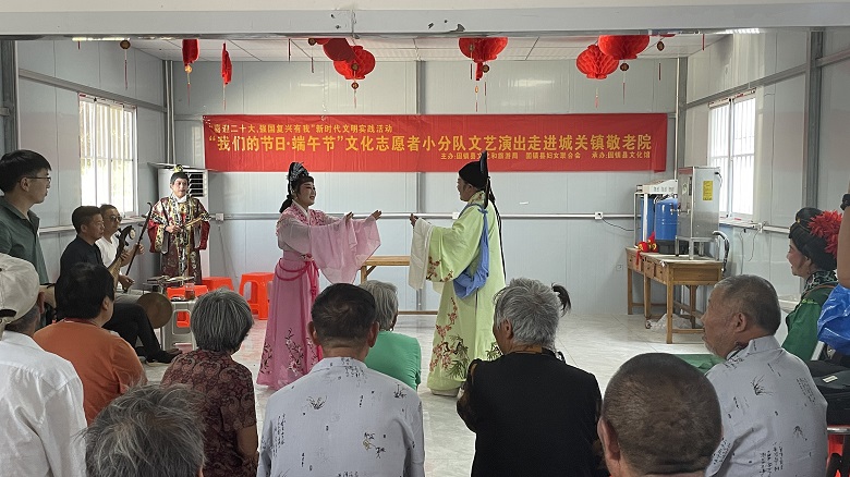 “一年一端午,一岁一安康。”为进一步传承优秀传统文化,虎年端午节期间,固镇县文化馆组织文化志愿者演出小分队,冒着高温来到城关镇敬老院,开展端午节慰问演出,为老人们演出原创古装卫调花鼓戏,祝愿老年人端午安康,健康长寿。