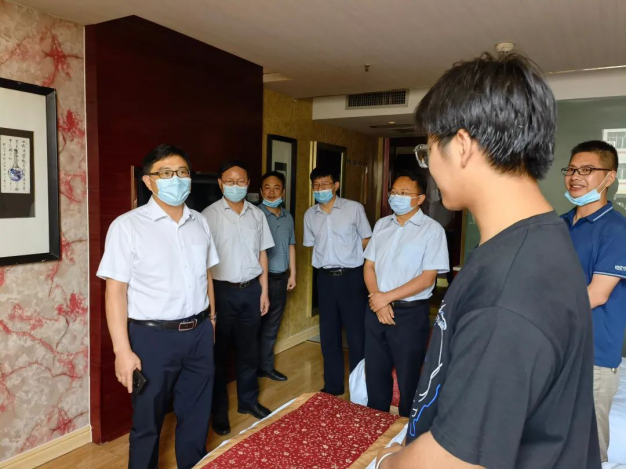 蔡和林一行先后来到绿岛酒店和飞鹅假日酒店,实地察看了考生居住环境,并叮嘱带队教师要进一步加强对考生食宿安全、卫生防疫以及周边环境的检查和管理,以扎实细致的工作,全力为考生营造安全、舒适、舒心的考试环境。