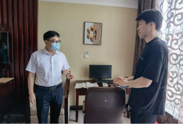 蔡和林深入考生的住宿房间,询问学生们的备考情况,叮嘱他们要保重身体,注意休息,劳逸结合,调整好心态,以饱满的精神迎接高考。