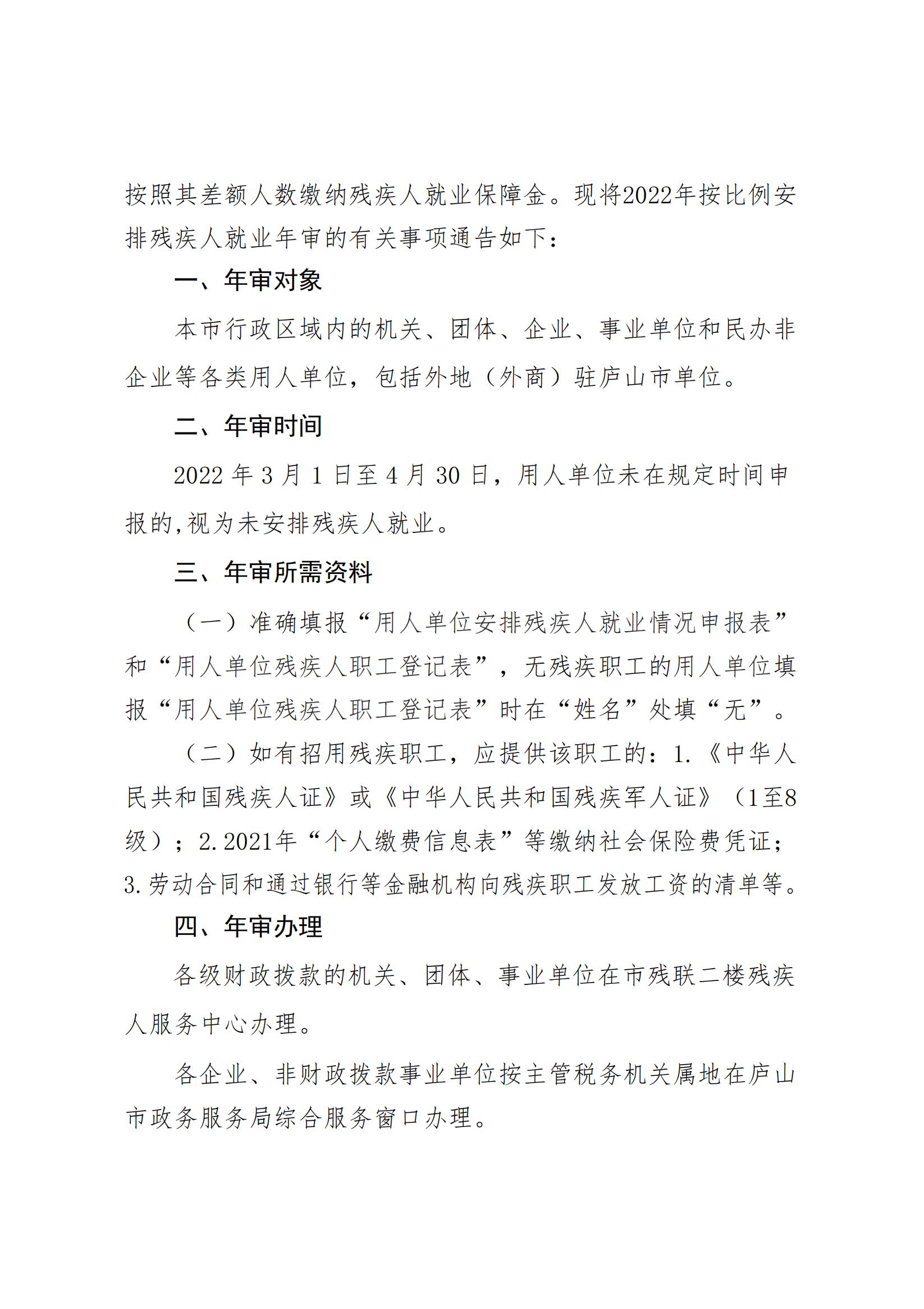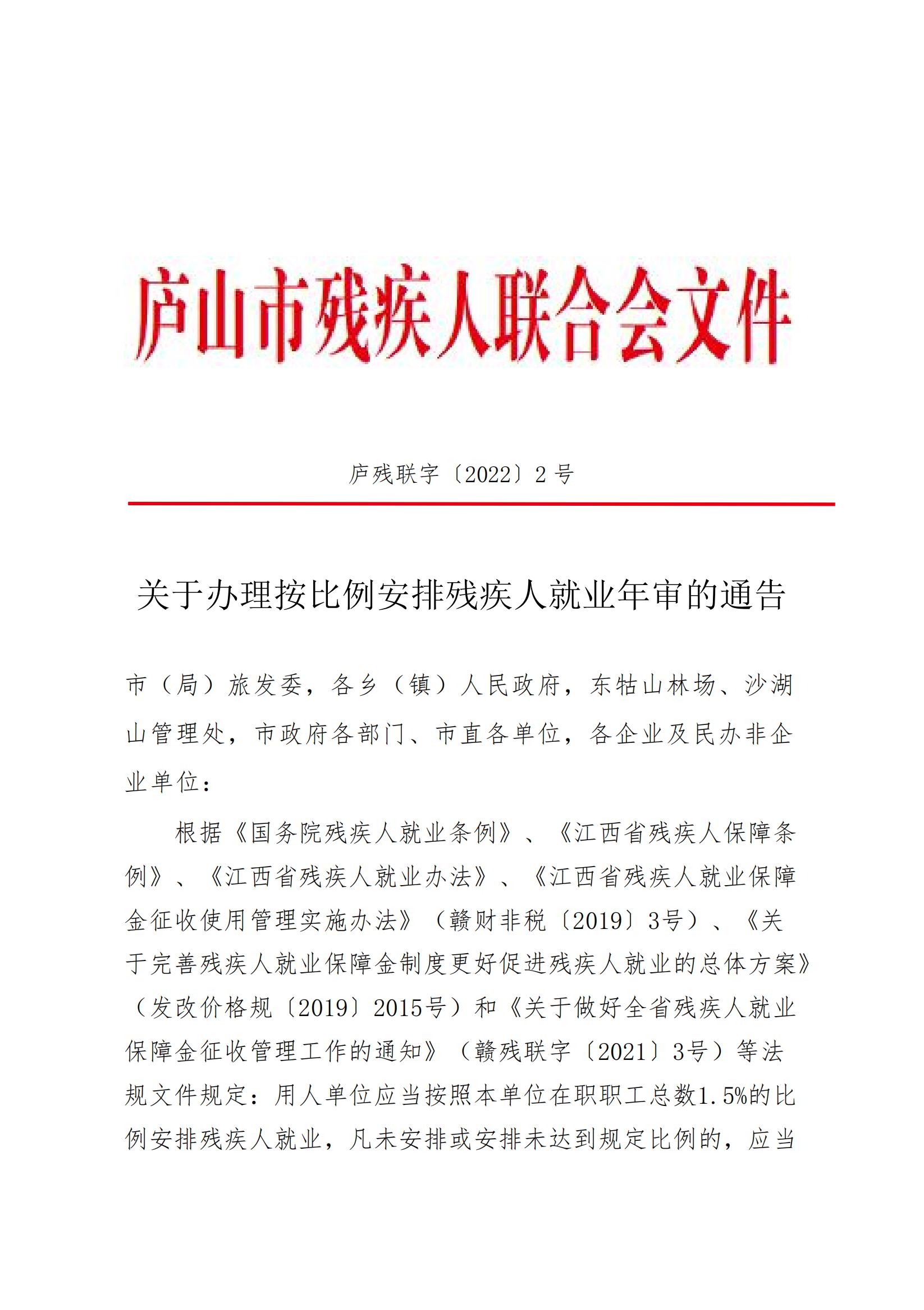 关于办理按比例安排残疾人就业年审的通知