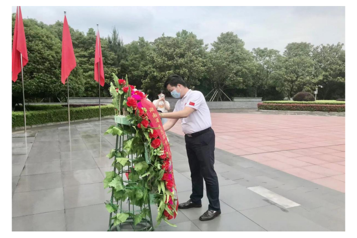 在任弼时同志铜像前,全体党员庄严队列肃立,向任弼时同志敬献花篮、行鞠躬礼,表达对老一辈无产阶级革命家崇高的敬意和深切的缅怀。督察二处党支部书记欧异斌同志带领大家重温入党誓词。