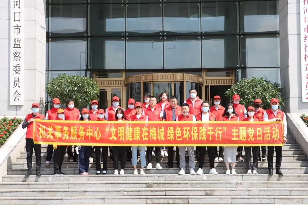为响应中央和省文明办关于大力倡导文明健康绿色环保生活方式的要求,全面巩固全国文明城市创建成果,6月10日下午,机关事务服务中心组成志愿者服务队,深入开展“文明健康在梅城 绿色环保践于行”主题党日活动,持续有效地推动志愿服务月活动顺利落实。