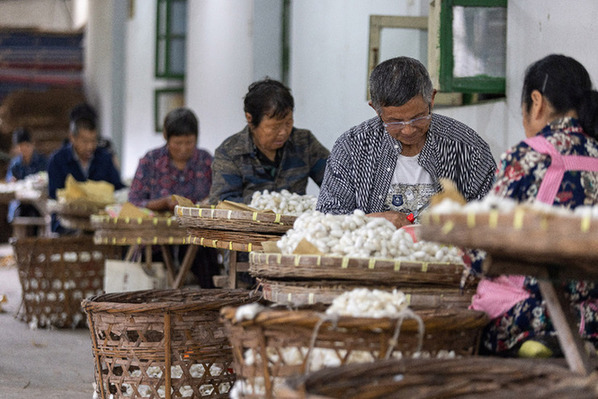 6月13日,在浙江省湖州市德清县洛舍镇东衡村的蚕种基地,蚕农削茧验蛹。眼下,在浙江省湖州市,蚕蛾育种工作正紧张进行,为秋季及明年春季的蚕种供应做准备。浙江省湖州市是我国重要的蚕桑产地之一,有着悠久的蚕桑生产历史,拥有优势品种和繁育技术,种桑养蚕成为水乡农户致富增收的重要途径之一。