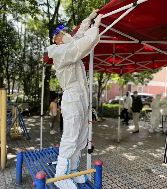 “最辛苦的时候,睡眠肯定无法保证”,在漕四居委进行志愿服务的乔鹏晨说道,“我们的防护服从寒冬穿到盛夏,里面的衣服也从茄克衫换成了短袖。”