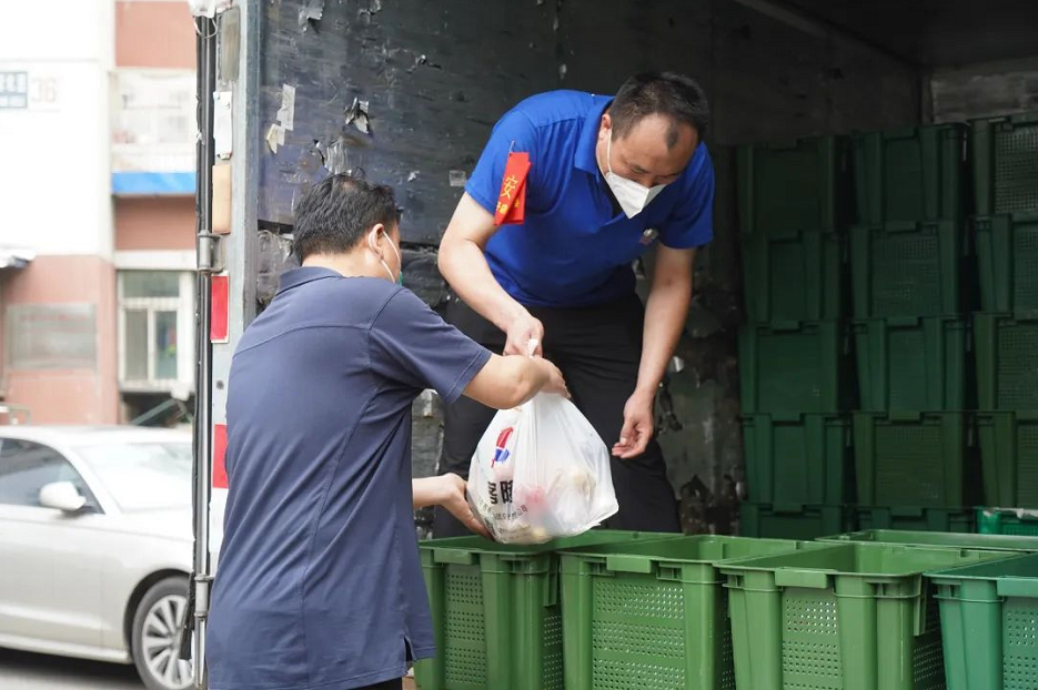 为了保障临时封控区内居民生活必需,让大家放心、安心,街道迅速调配了一批新鲜蔬菜,并迅速分装后,工作人员穿上“大白”逐一将新鲜的“爱心蔬菜包”送到封控区居民家门口。
