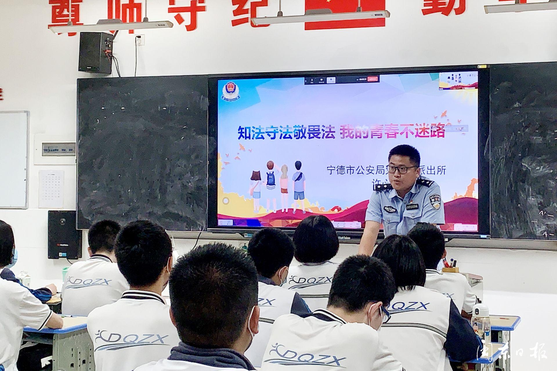 课堂上,民警通过播放事先根据中小学生的年龄和心理特征精心制作的课件,运用通俗易懂、风趣幽默的语言,详细讲解与校园安全、网络安全等相关法律法规,引导同学们树立法律意识,学会用法律的武器维护自身合法权益,争做知法、懂法、守法的好少年。