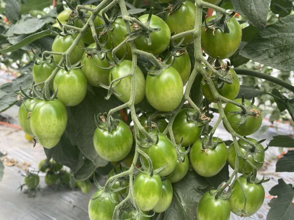 “绿宝石这个品种,是目前唯一的一个100%纯绿熟精品特色番茄,还含有其他品种没有的叶黄素,能明目利眼。”周其德介绍,5月开始,绿宝石、紫娃、金如意、红风铃四个新品种番茄陆续上市,这些品种正如其名,分别呈现绿色、紫色、黄色和红色,是市面上较为少见的品种,种植过程中打理、修剪更费时,但番茄风味浓,口感更好。