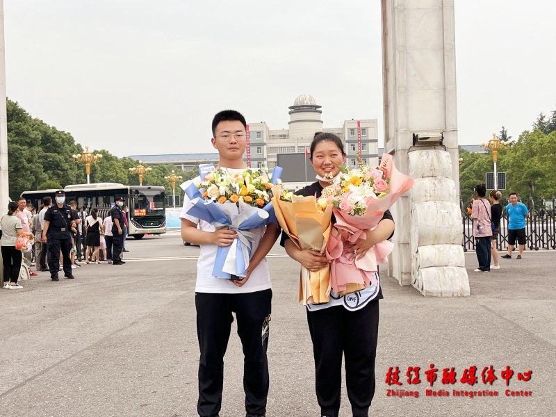 手捧鲜花在考点外等候的考生家长马女士最想对女儿说:“祝福你走完了人生的第一考,愿你以坚实的脚步走向更高的台阶。”