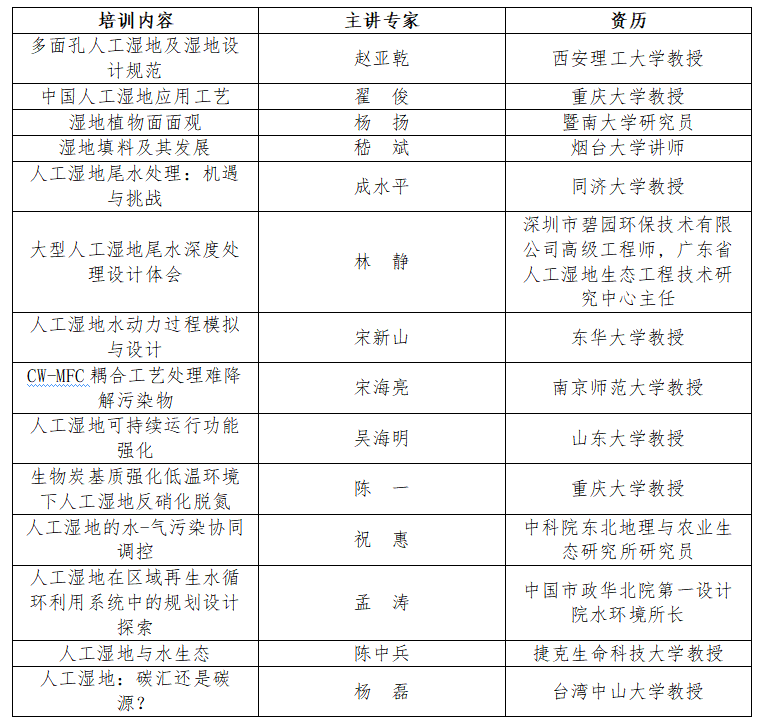2022年人工湿地污水处理技能提升高级研修线上培训班