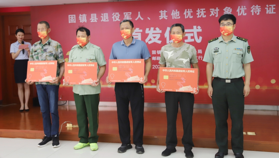 6月14日上午,固镇县举行退役军人及其他优抚对象优待证首发仪式。县人大副主任高正薇、县政府副县长苏永松、县政协副主席刘览、县人武部参谋孙凯出席活动。县退役军人事务局、邮储银行、工商银行、农业银行负责人及全县20多名退役军人、军烈属代表参加了活动。