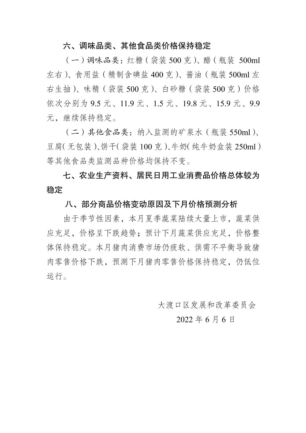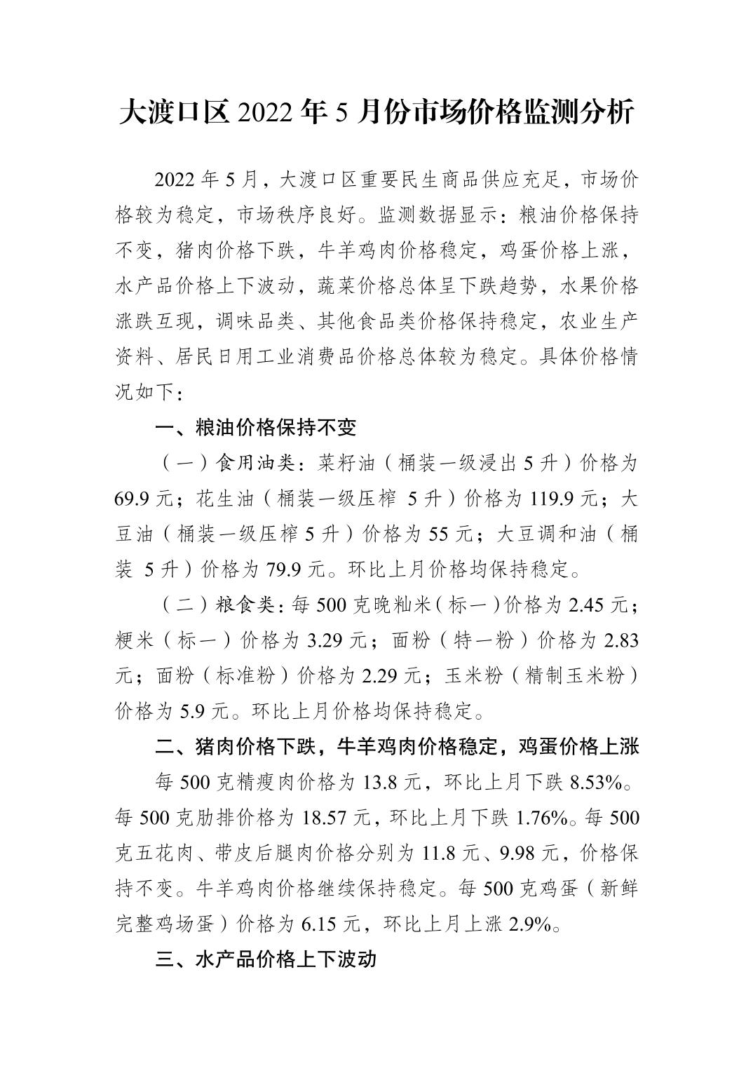 大渡口区2022年5月份市场价格监测分析