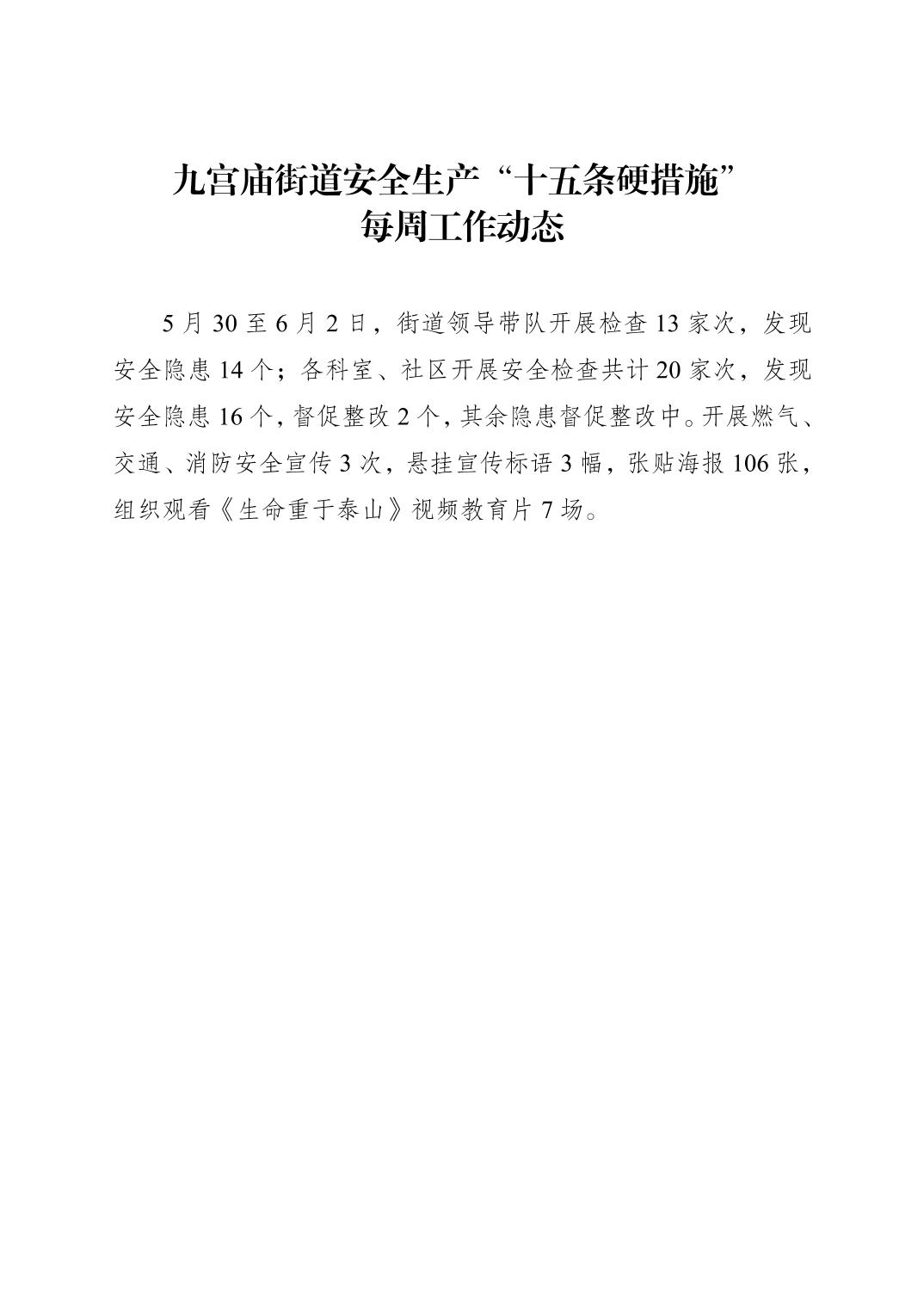 九宫庙街道安全生产“十五条硬措施”每周工作动态