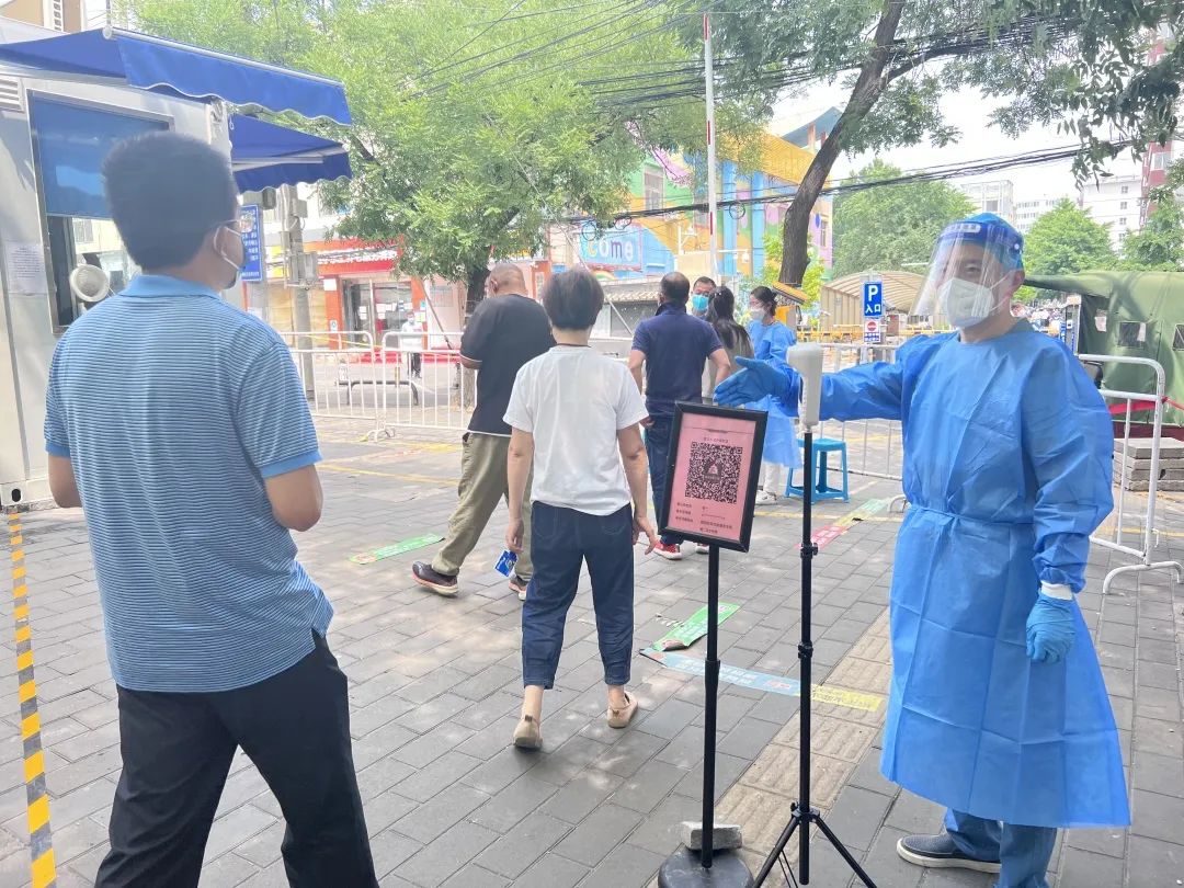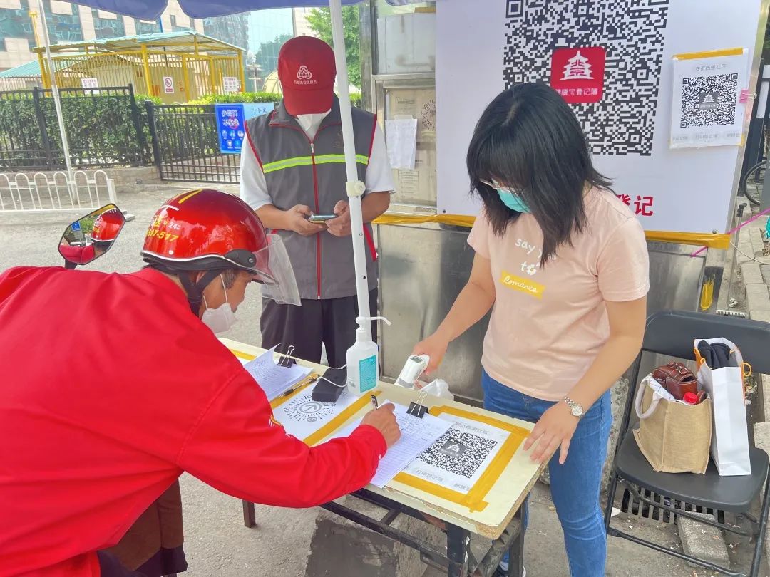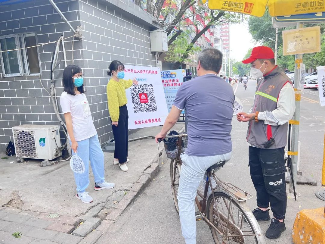 自6月13日以来,区征收中心共派出5名党员干部,在安贞西里社区两处卡口配合安保人员对出入人员进行测温,扫描“健康宝”,查验出入证,无证人员登记等工作。