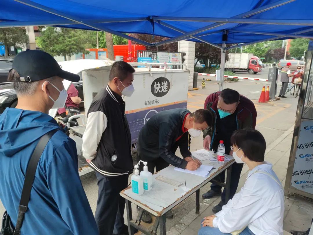 因多数区人防办机关干部已参与过安贞街道多轮区域核酸检测任务及劲松街道、潘家园街道支援任务,有着丰富的工作经验。他们按照先前部署,准时到达点位,配合卡口安保人员落实出入社区人员“四件套”情况,包括检查出入证、健康宝扫码、无出入证人员登记、测温等内容。每个卡口值守人员的工作照片发至区人防办的微信群中,建立工作日志,及时反馈卡口值守情况。