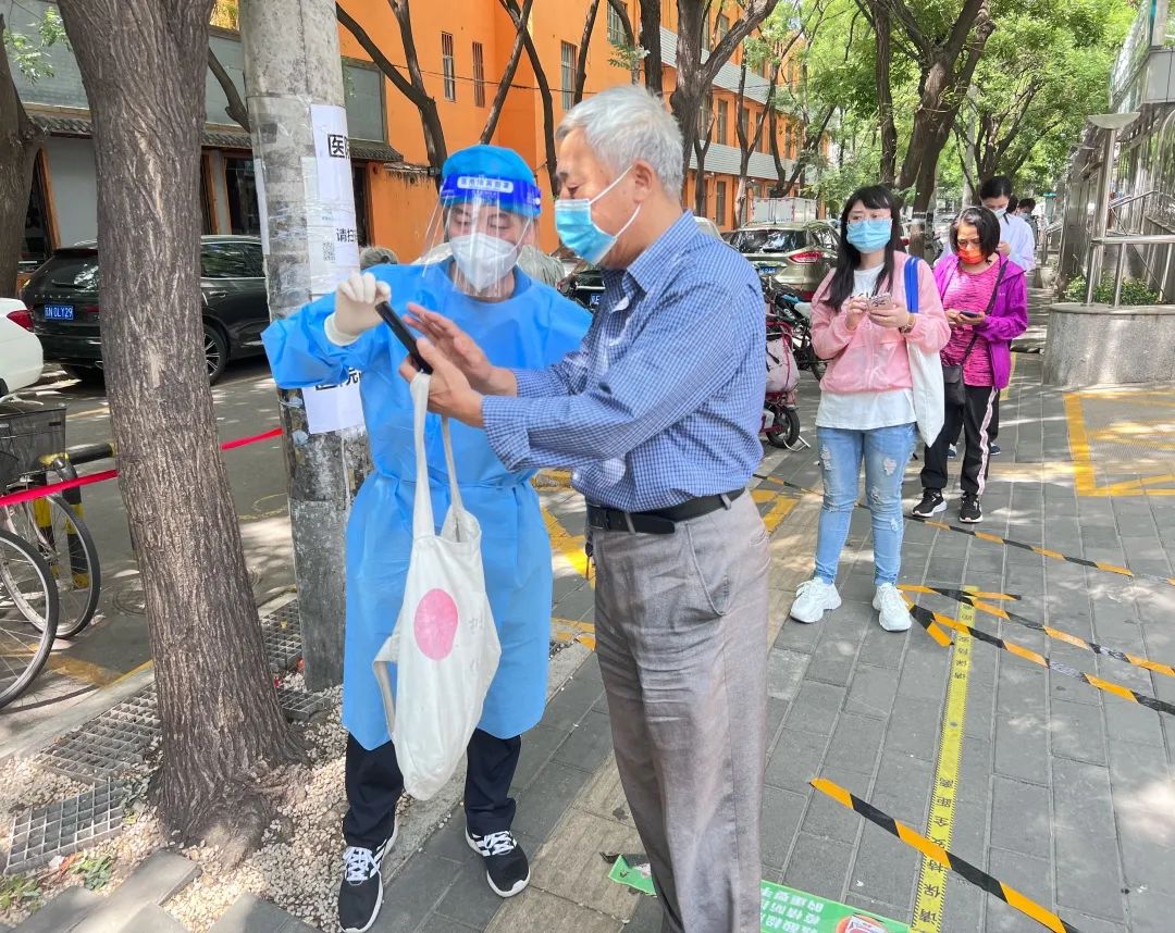 其中,司法局干部徐俊被分配到安贞社区卫生服务中心检测点位进行支援,负责查验该点位居民的“健康宝”,以及测温、维持秩序等工作。遇到不熟悉健康宝操作的老年人,徐俊耐心地帮助其完成“健康宝”扫码;如果有需要上网课的学生或者行动不便的老人,他也会积极与其他前来做核酸的居民沟通协调,为学生和老人开辟绿色通道,帮助他们快速完成核酸检测。