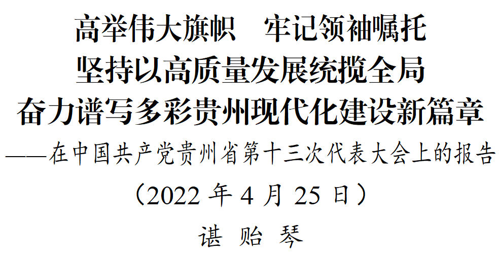 同志们,雄关漫道真如铁,而今迈步从头越。让我们更加紧密地团结在以习近平同志为核心的党中央周围,牢记领袖嘱托、牢记初心使命,忠诚干净担当、勇闯发展新路,奋力谱写多彩贵州现代化建设新篇章,以优异成绩迎接党的二十大胜利召开!