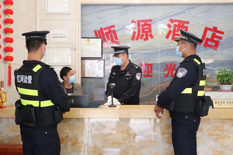 “张警官,上次要求整改的已经弄完啦,这次你再帮我们看看吧”。看到民警又来开展工作,顺源酒店的管理员老杨笑嘻嘻地说道。日常开展行业场所安全检查,不仅能预防违法犯罪的发生,更是保护辖区安全的重要环节。检查结束后民警提醒到:“对住宿人员要按要求进行登记,另外你这里附近都是居民区,一定要提醒客人夜晚不要大声喧哗,影响到周边居民休息”。端午节前,红河边境管理支队半坡边境派出所在全乡重点区域、重点部位加大警力投放,加大网格化巡逻和行业场所安全检查力度,切实提高街面见警率、管事率,最大限度地消除各类安全隐患,让群众过上上一个平安端午节。