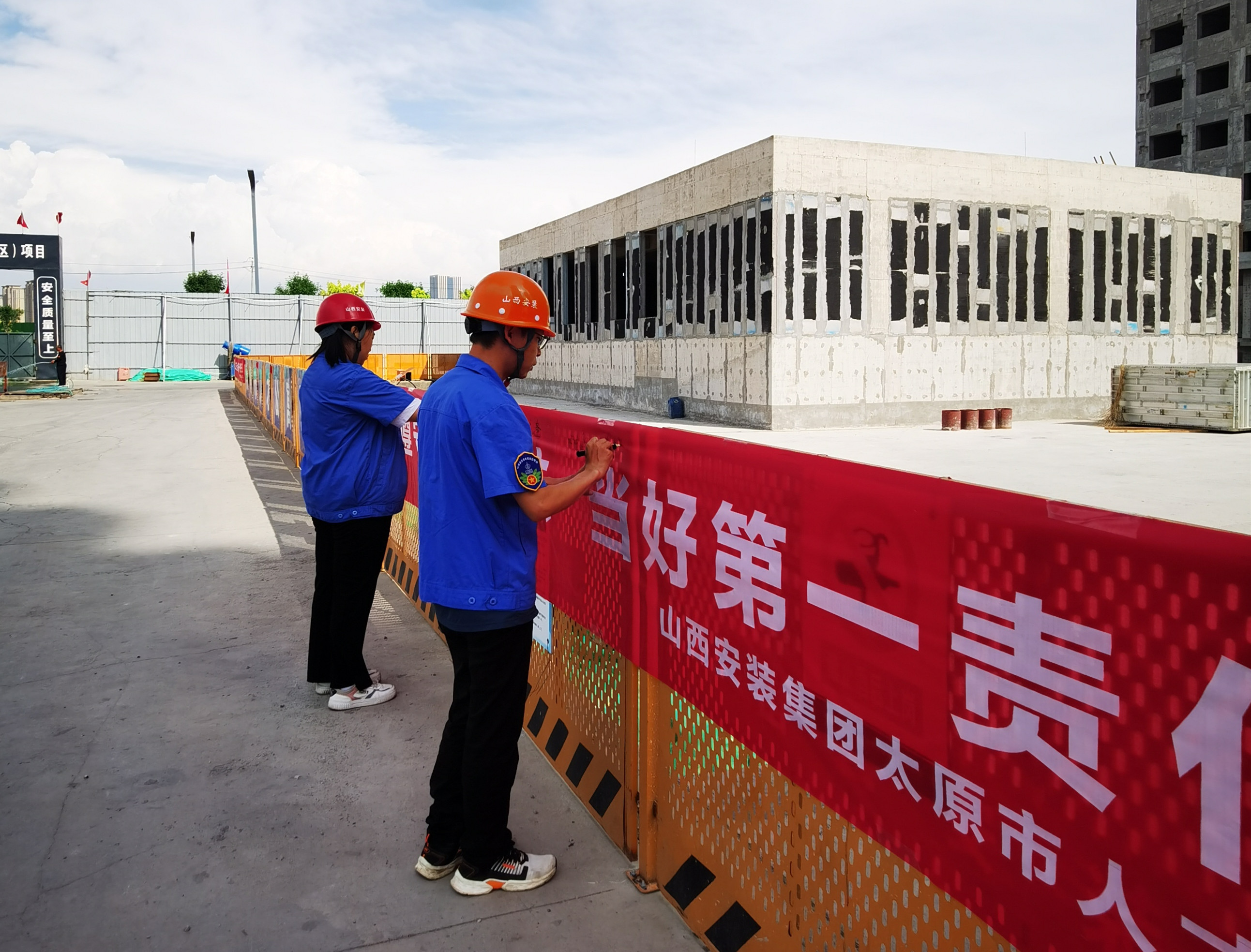 启动仪式上,各项目经理作为本项目的第一责任人,向管理人员和劳务人员宣贯了活动方案,并对《安全生产法》进行解读与培训,从思想、认识、态度上强化所有人员的安全素质。项目部全体员工进行了安全宣誓,并在主题横幅上签名。要求大家要深入学习全国“安全生产月”的总体思路和主要内容,同时要大力开展警示教育、应急预案演练等活动。