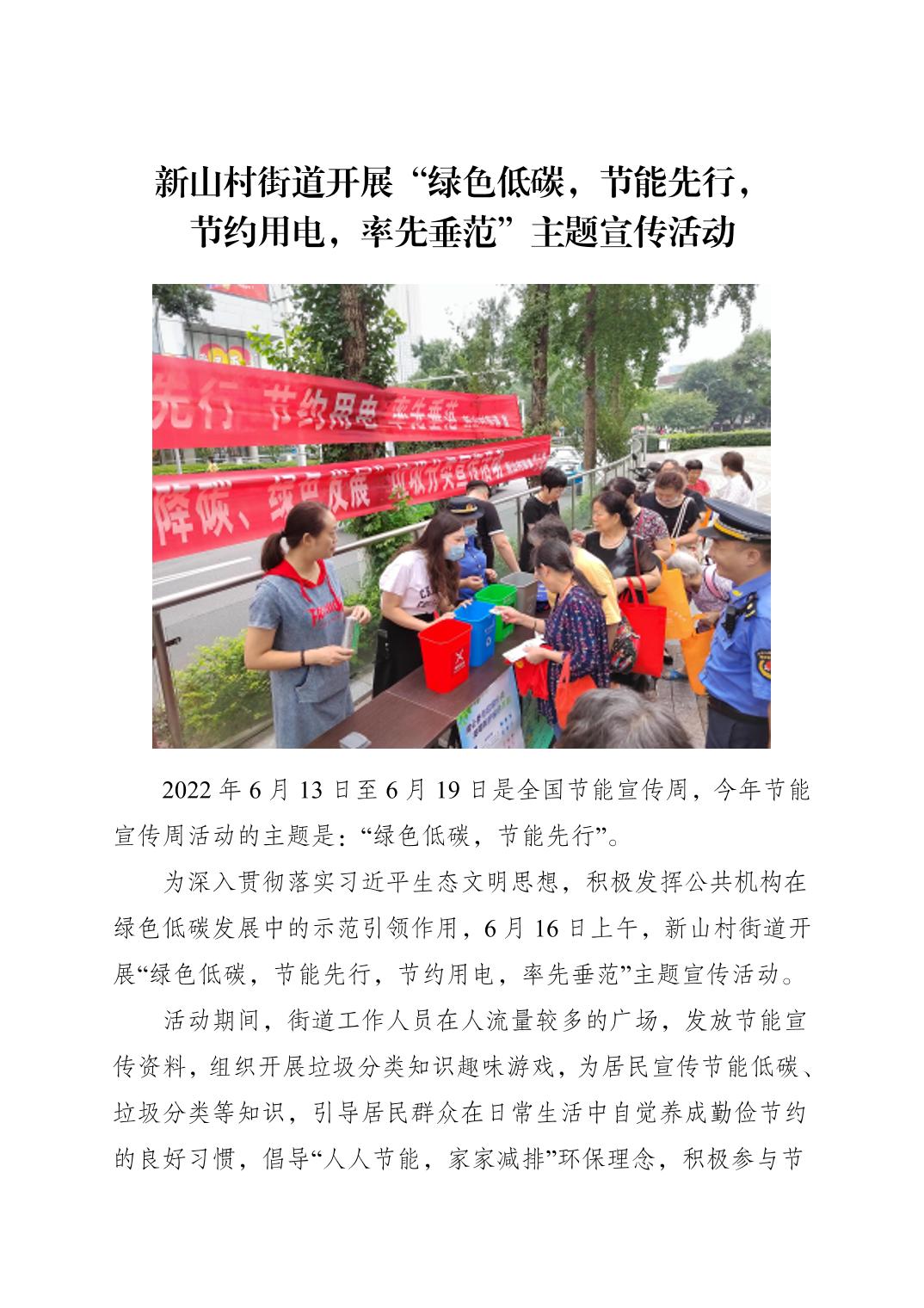 新山村街道开展“绿色低碳,节能先行,节约用电,率先垂范”主题宣传活动