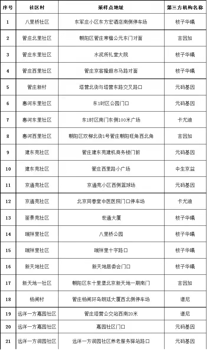 管庄地区6月16、17、18日便民核酸检测点速览