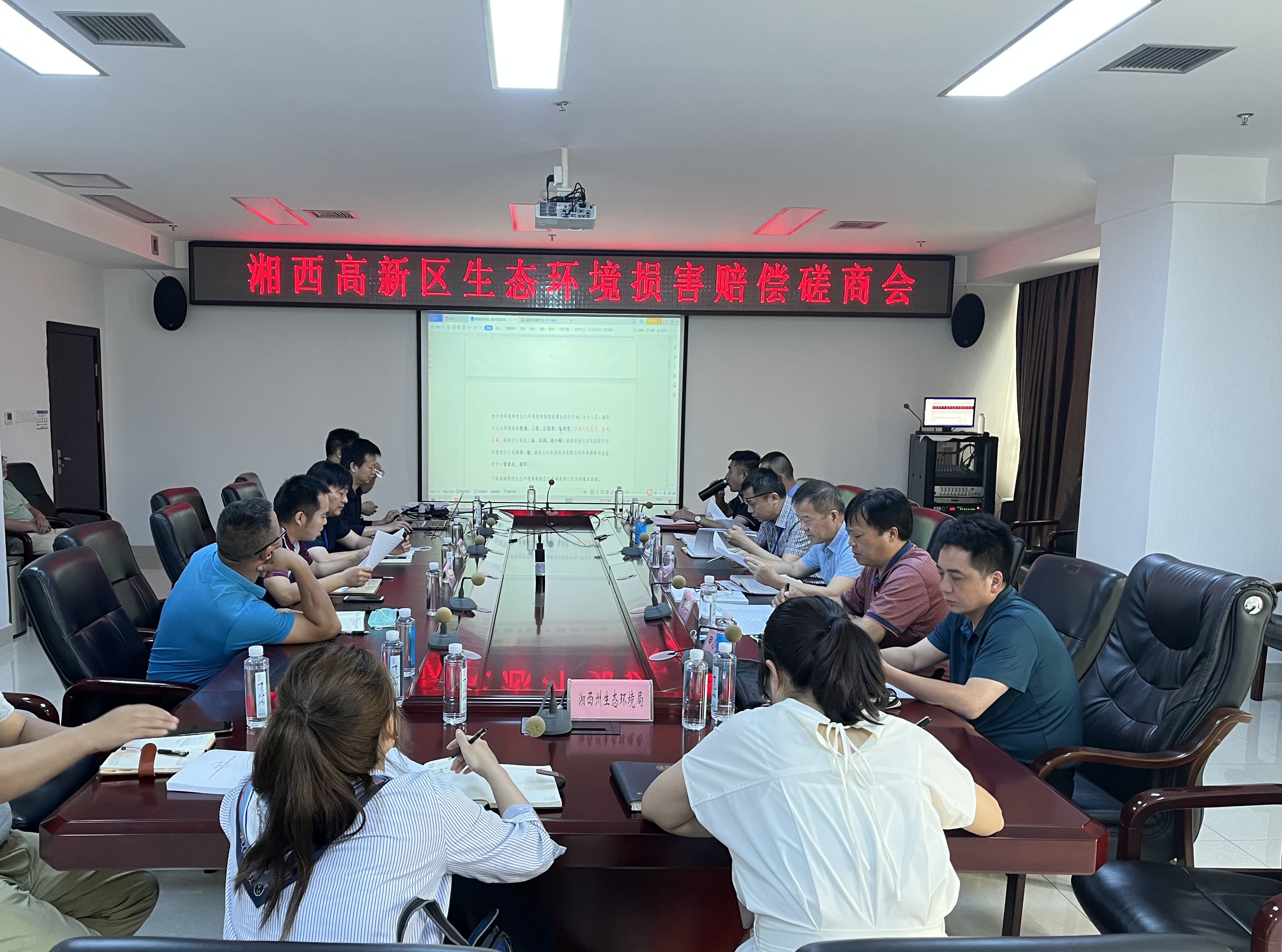 近日,湘西高新区组织召开园区首次生态环境损害赔偿磋商会,湘西州检察院、湘西州生态环境局、相关企业、评估鉴定单位等参加会议,磋商会取得了圆满成功。