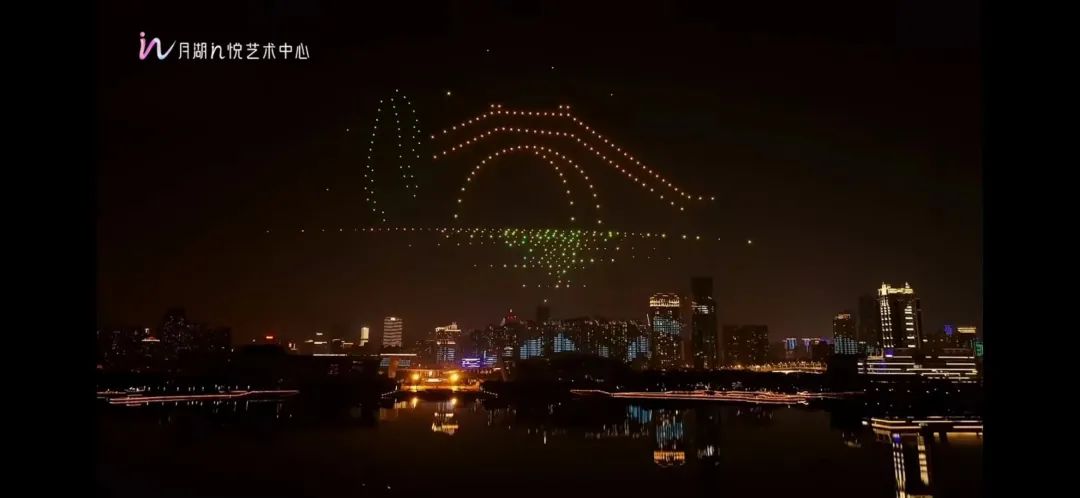 5月20日晚,月湖畔上演一场无人机飞行秀