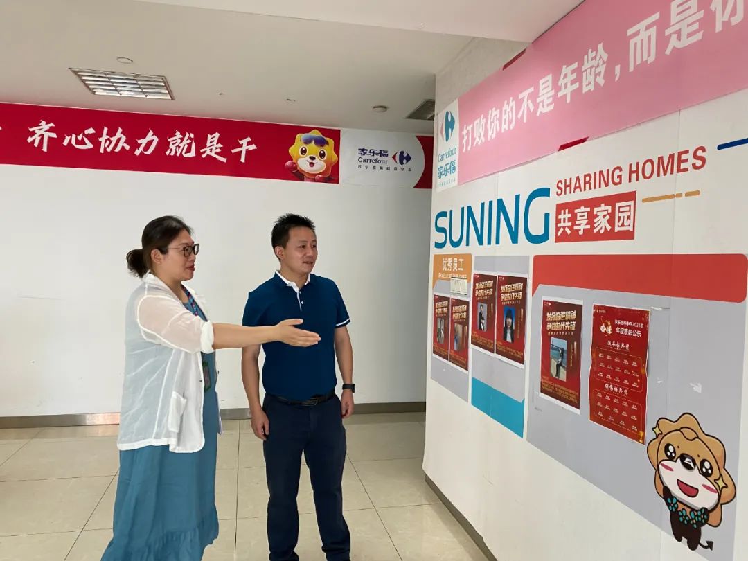 家乐福相关负责人向区发改局、区金融办、琴断口街道的金牌管家介绍企业近况