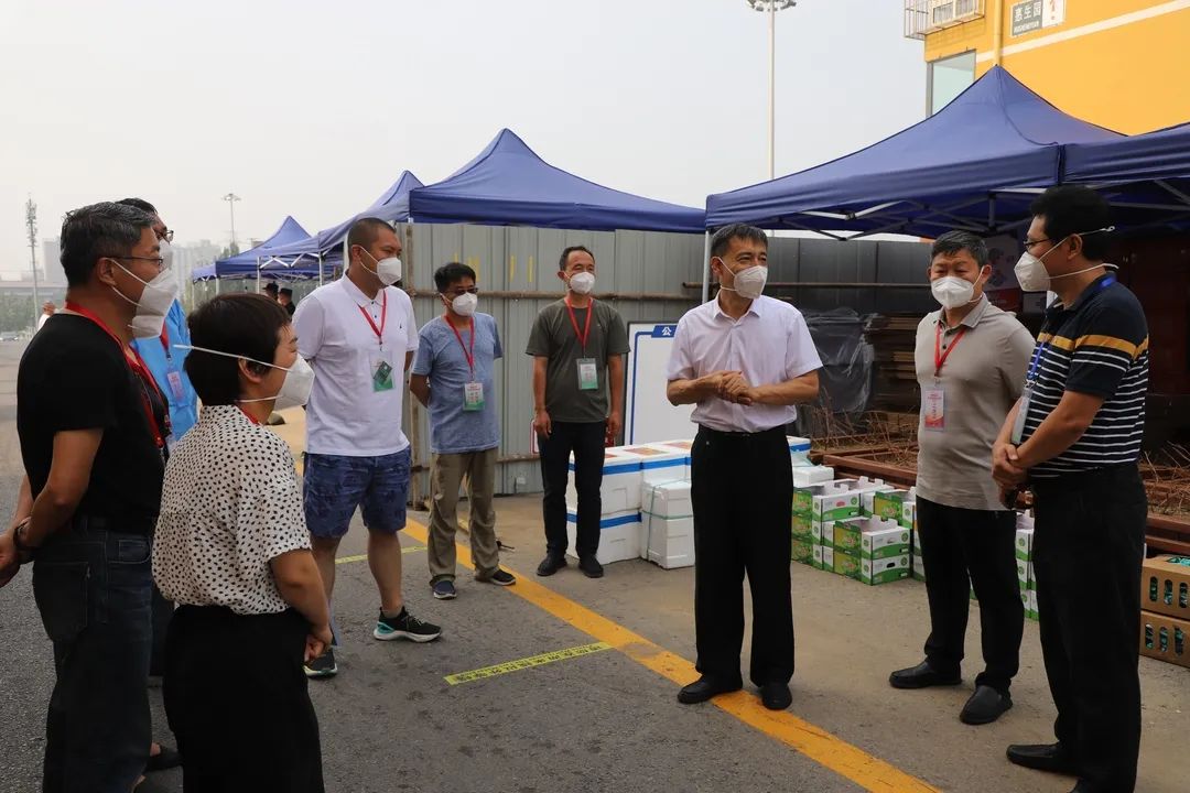 6月20日上午,乡党委书记顾洪涛、副书记王艳平一行到通惠家园社区管控现场,慰问支援通惠家园社区管控工作人员。