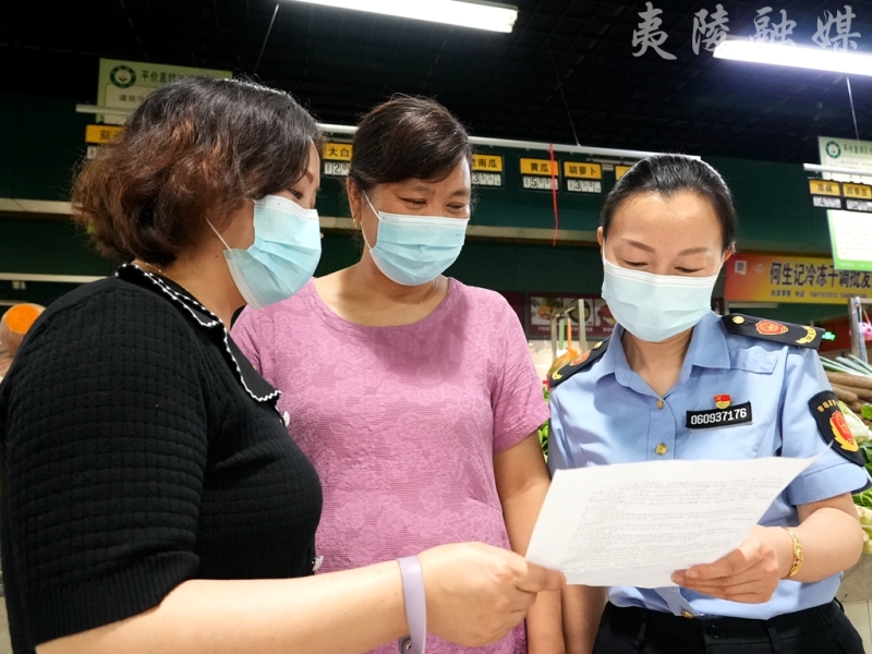 本网讯(记者 熊伟 通讯员 董娈捷)“不出线经营,店里的商品、货架都不能摆放到线外,把过道让给行人,让出行更加畅通,上下货也更方便。”6月22日,夷陵区市场监管局带着《宜昌市文明行为促进条例》走进城区各个农贸市场,用通俗易懂的语言向农贸市场商户讲解条例,让市场文明“声”入人心。