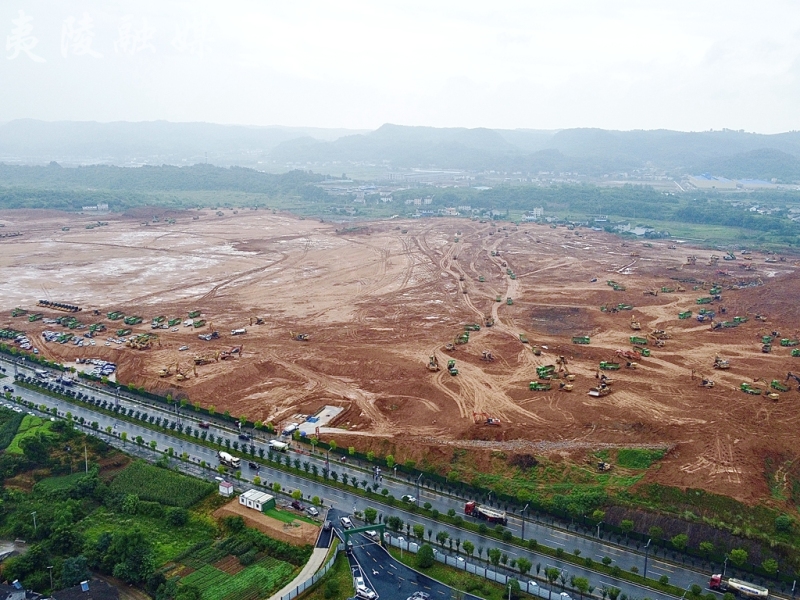 高峰时,工地上穿梭着500多辆工程车,经过一个月的日夜奋战,共完成了土石挖方369万立方米。