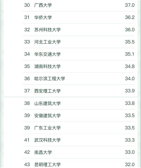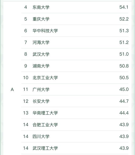 在给排水科学与工程专业排名中,依旧有93所高校上榜,A+的高校依旧为清华大学、同济大学、哈尔滨工业大学这三所大学。