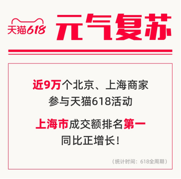 从天猫618持续稳定正增长可以看出,消费需求逐步释放,消费活力进一步激发,商家经营回暖,市场主体运行渐稳。