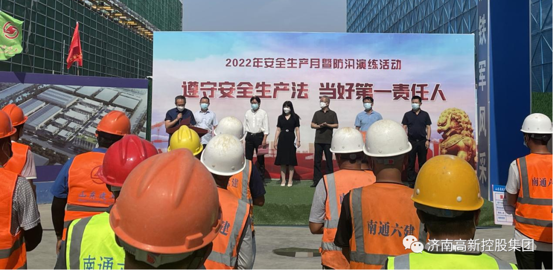 今年6月是全国第21个“安全生产月”,其主题为“遵守安全生产法当好第一责任人”,6月22日,济高临空公司围绕主题,在中德合作产业园项目开展在建项目2022年度安全生产月暨防汛演练活动,为推动公司项目建设高质量发展做好安全保障。