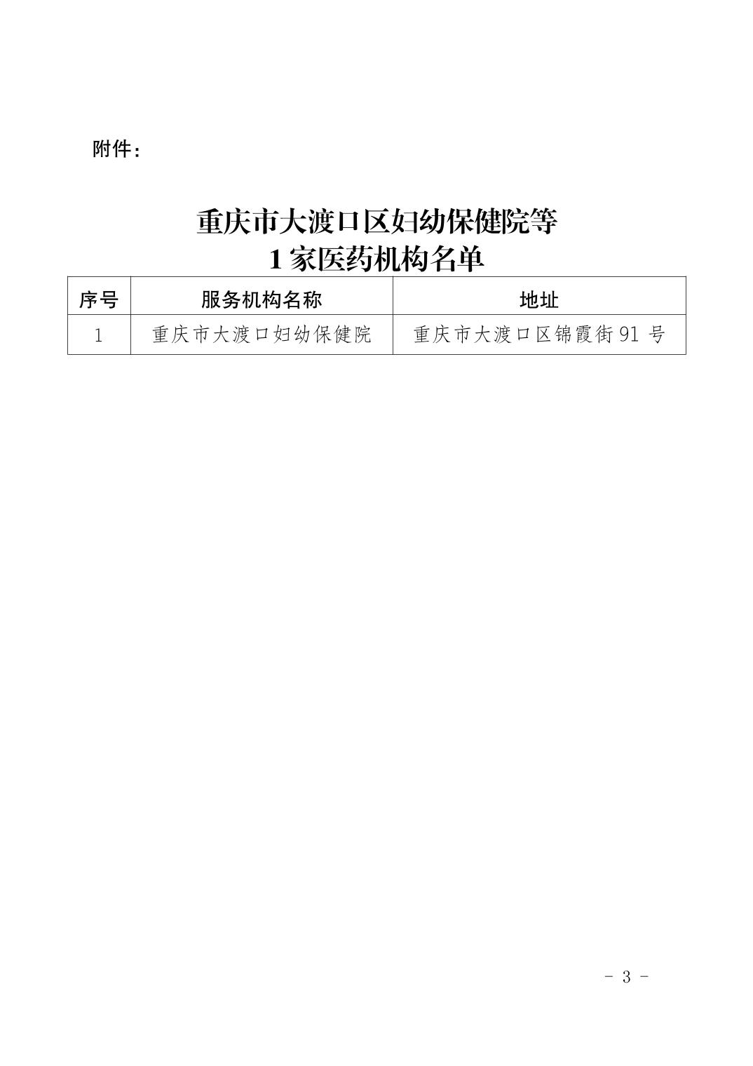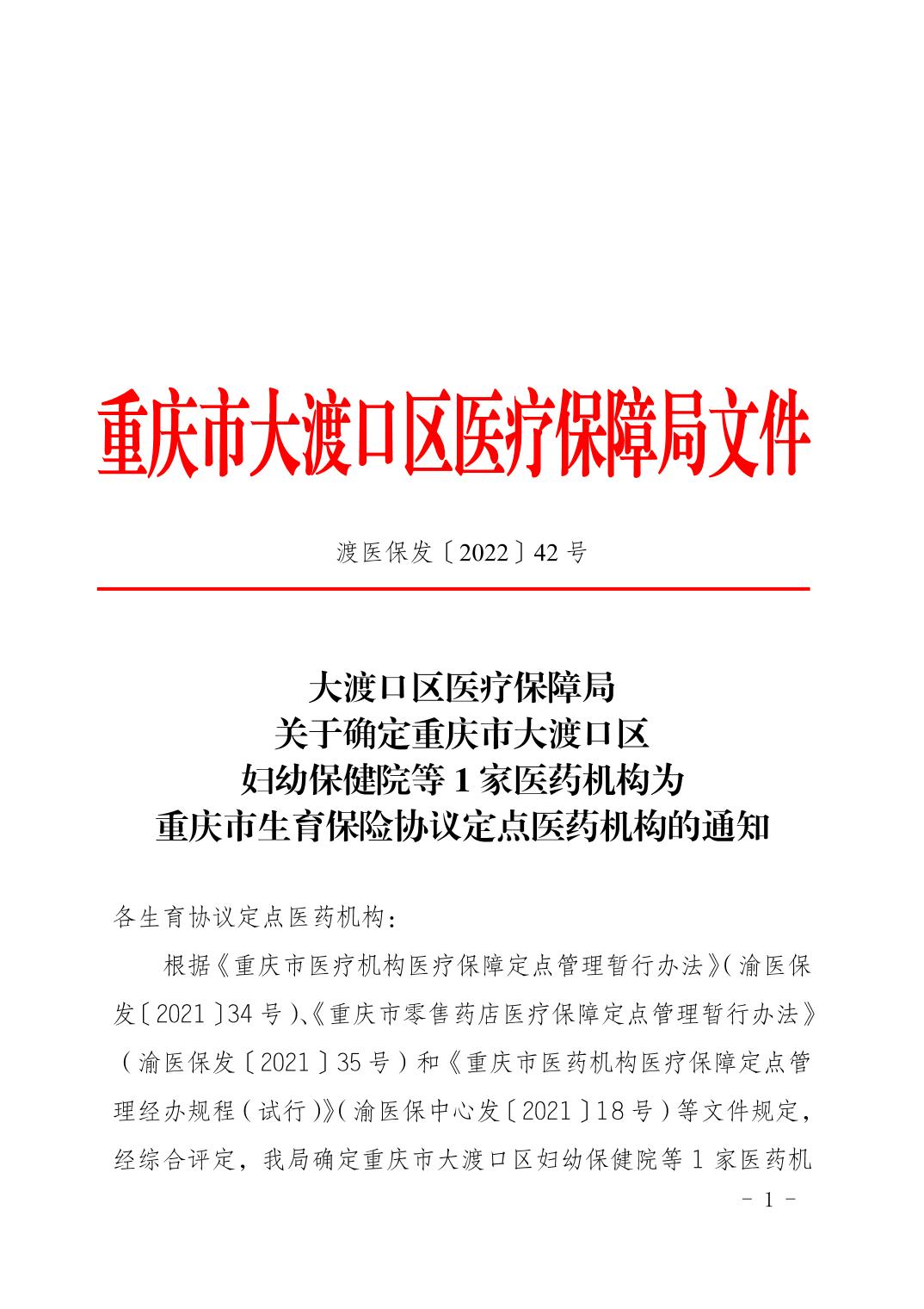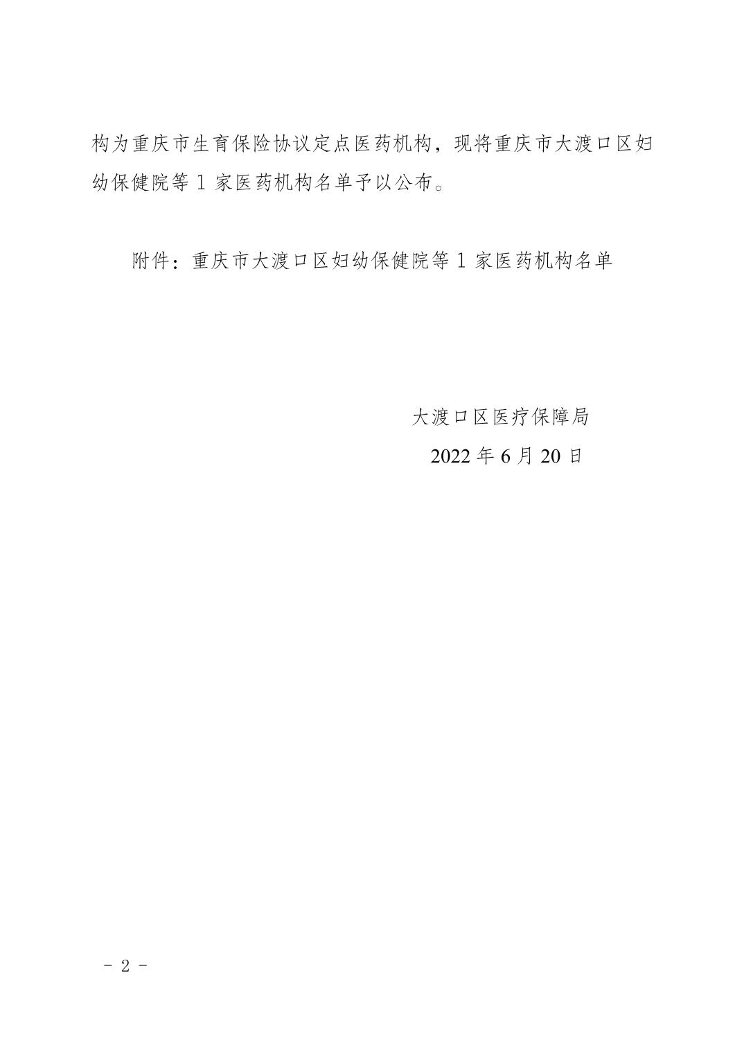 大渡口区医疗保障局关于确定重庆市大渡口区妇幼保健院等1家医药机构为重庆市生育保险协议定点医药机构的通知