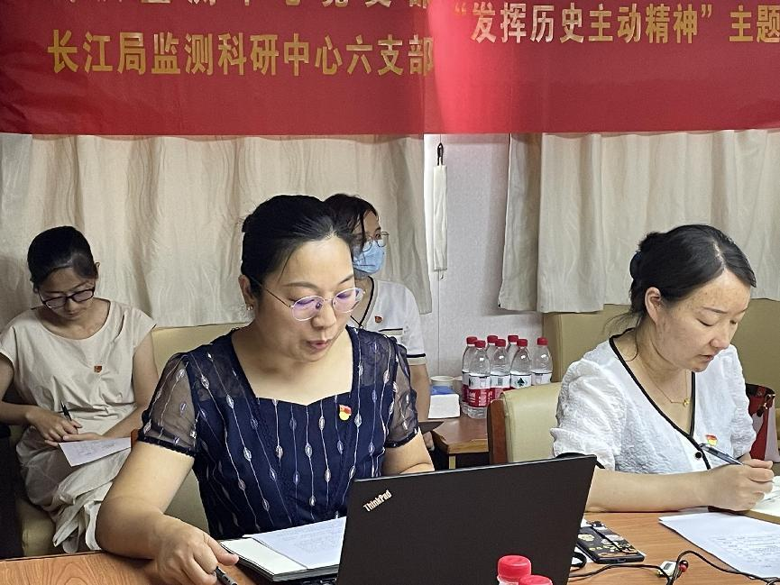主题党日活动中,全体党员面向党旗,紧握右拳,重温了入党誓词。长江局监测科研中心的饶春燕同志就“发挥历史主动精神,走好新时代的赶考之路”给大家讲了一堂内容深刻的党课。“习近平总书记有一句话:历史发展有其规律,但人在其中不是完全消极被动的。我们应该掌握规律,积极作为,发挥主观能动性。历史主动精神的内核就是清醒的历史自觉,坚定的历史自信,强烈的历史担当。”饶春燕同志通过介绍历史主动精神、赶考之路的含义和二者之间的联系,激励大家以咬定青山不放松的执着奋力实现既定目标,以行百里者半九十的清醒不懈推进环保事业的发展。在场党员同志深受启发和鼓舞,纷纷表示将发扬伟大的历史主动精神,以实际行动做出成绩,迎接党的二十大胜利召开。?