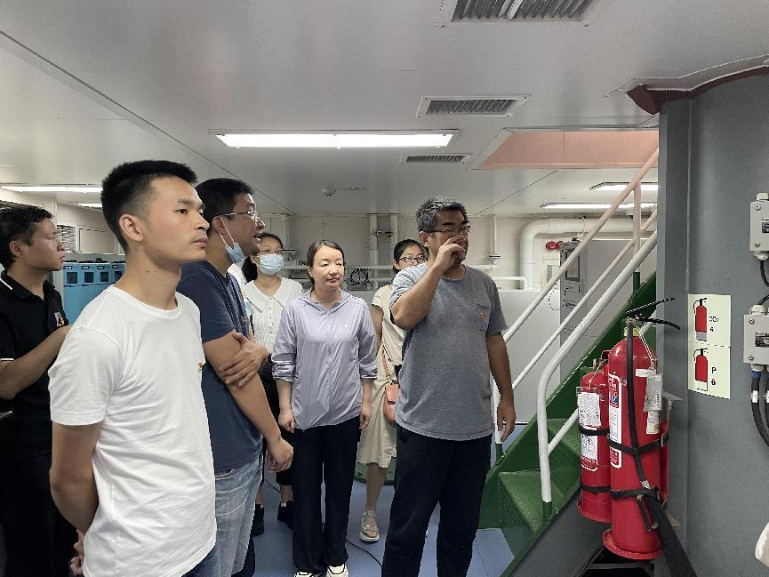 长江局监测科研中心的杨旭光同志带领大家参观了“中国环监008”监测船。监测船搭载着先进的自动监测设备,可以在巡航过程中连续在线监测水质指标,具备“高密度、长序列、多因子”的特点,圆满完成了多项长江流域的生态环境监测、评价和科学研究工作。