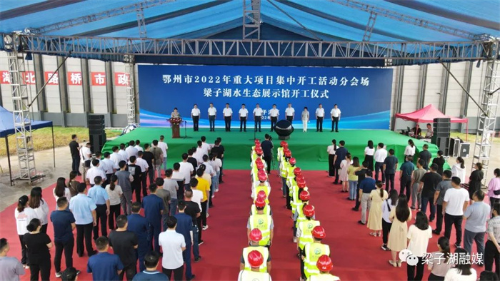 项目促发展,实干聚合力。6月24日,鄂州市重大项目集中开工,梁子湖区分会场活动在梧桐湖园区梁子湖水生态展示馆项目现场举行。副市长邱实出席并宣布项目开工,区委书记、区人大常委会主任蔡和林致辞,区委副书记、区长窦小华主持集中开工仪式,联投新城集团党委书记、董事长胡黎明介绍项目概况。