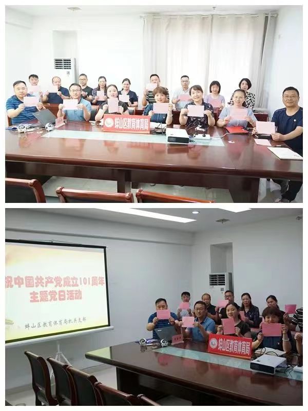 2022年7月1日是中国共产党成立101周年的日子,蚌山区教育体育局机关党支部以多种形式开展了庆“七一”主题党日活动。